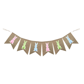 Gingham Rabbit Silhouette Printed Party Banner with Pompom Tail and Scallop Edge for Easter Occasions