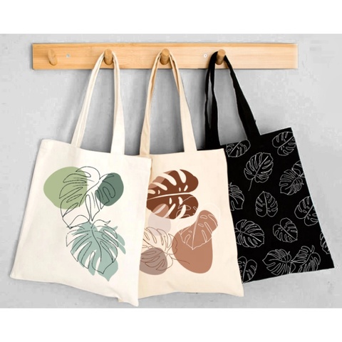 WUJI 100% pamuk tropikal yaprak baskı denizcilik tarzı sanat & tahsil ile tuval Tote çanta özelleştirmek